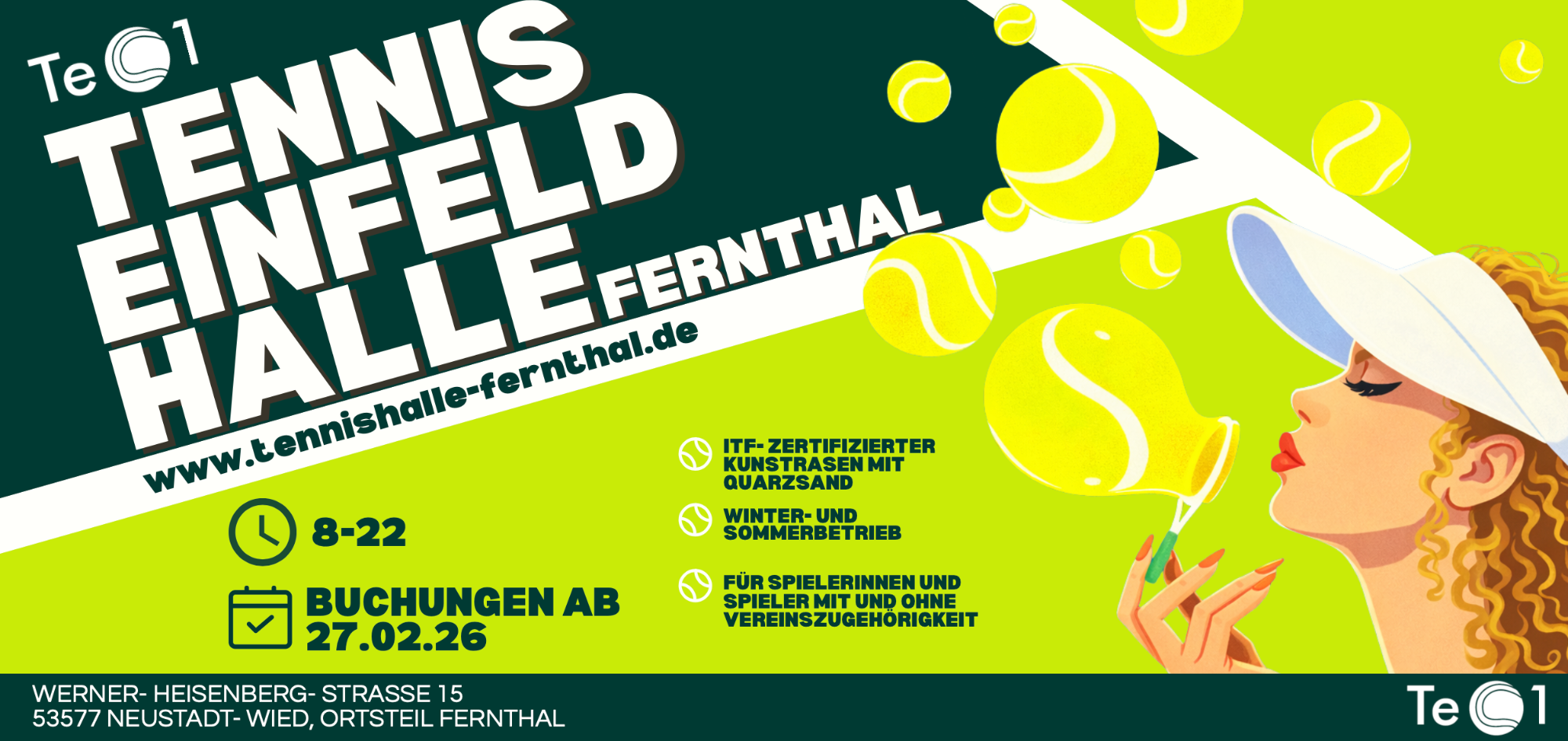 Die Tennishalle Fernthal ist eine nachhaltige Tennis-Einfeldhalle im Ortsteil Fernthal (Neustadt-Wied) und bietet ganzjährig optimale Bedingungen für Freizeit- und Leistungsspieler.