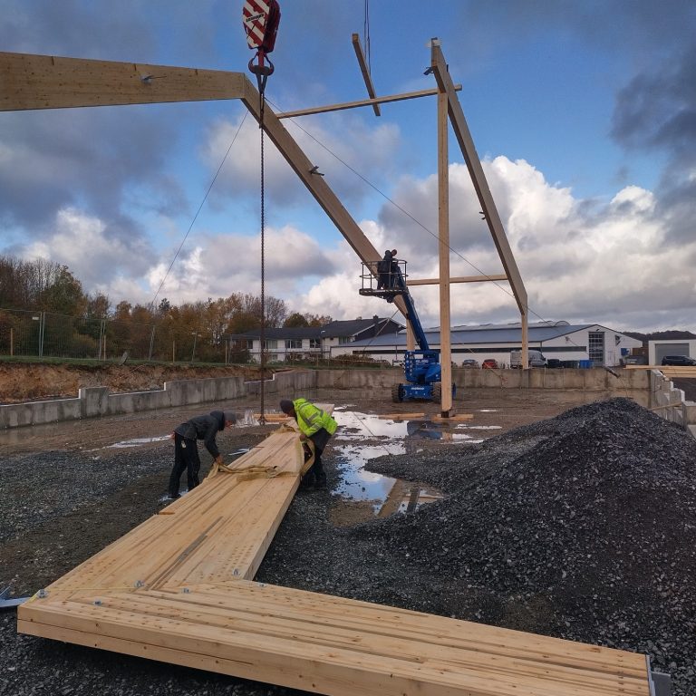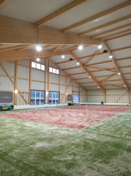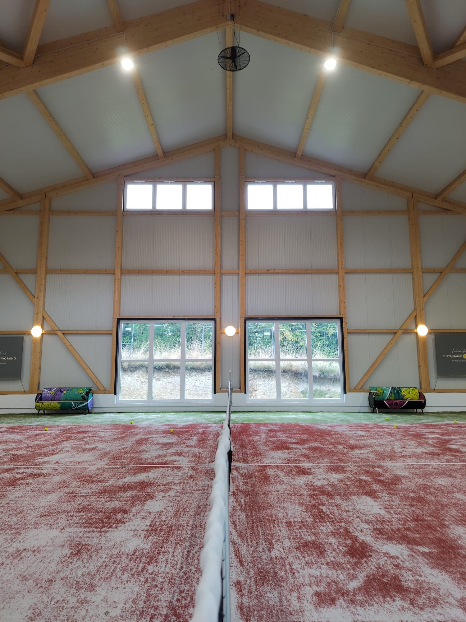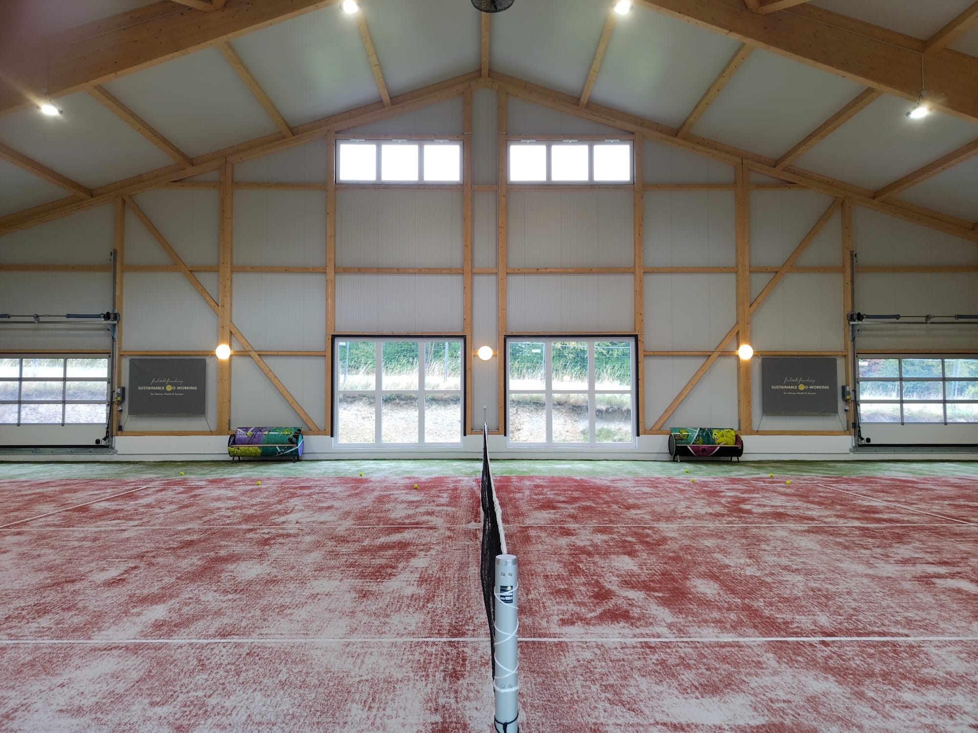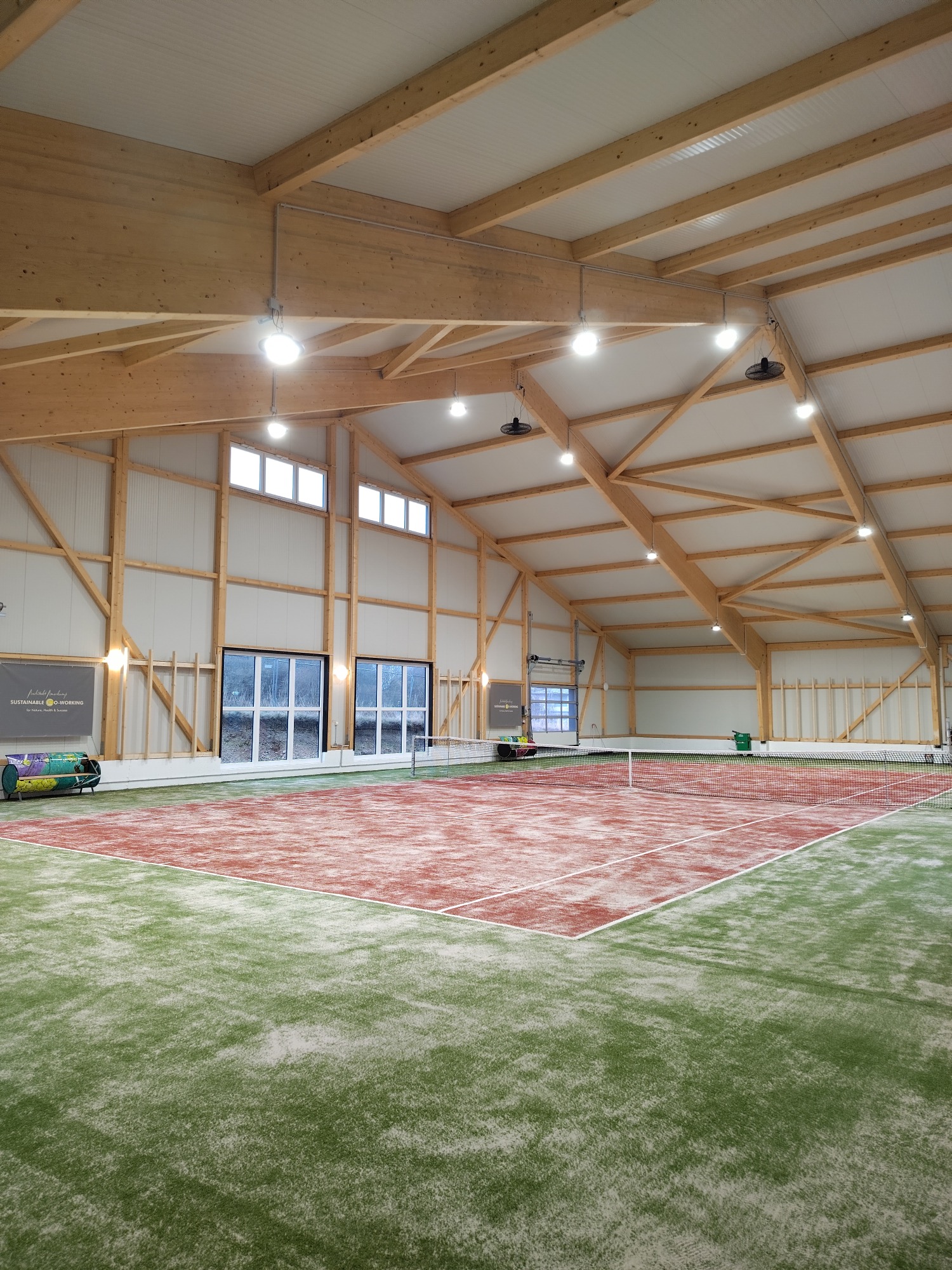Ganzjährig Tennis spielen in moderner Holzbauhalle.