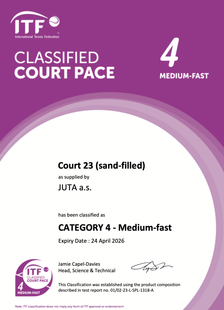 Gespielt wird auf einem ITF-zertifizierten Kunstrasenplatz, der die Eigenschaften klassischer Ziegelmehlplätze nachbildet: